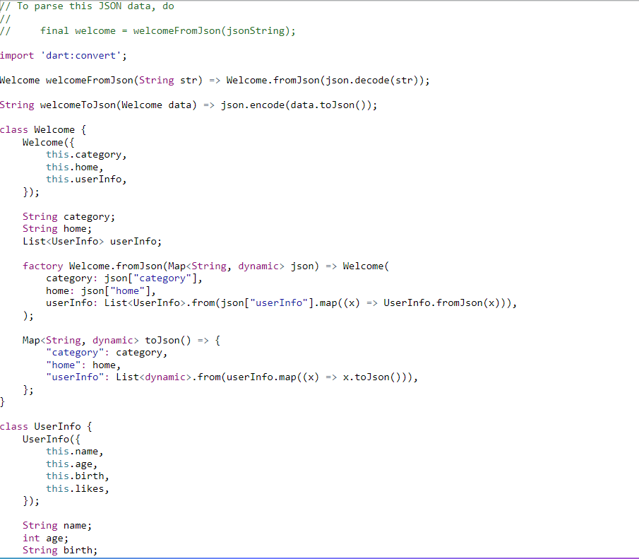 다음과 같은 dart 코드를 제공해준다.