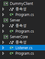 앞서 진행한 소켓 프로그래밍 구현에서 ServerCore 폴더에