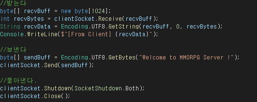 byte[] sendBuff = Encoding.UTF8.GetBytes("Welcome to MMORPG Server !");