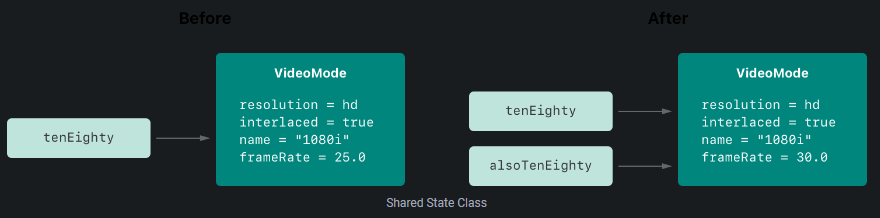 tenEighty와 alsoTenEighty는 같은 VideoMode 인스턴스를 참조하기 때문이다.