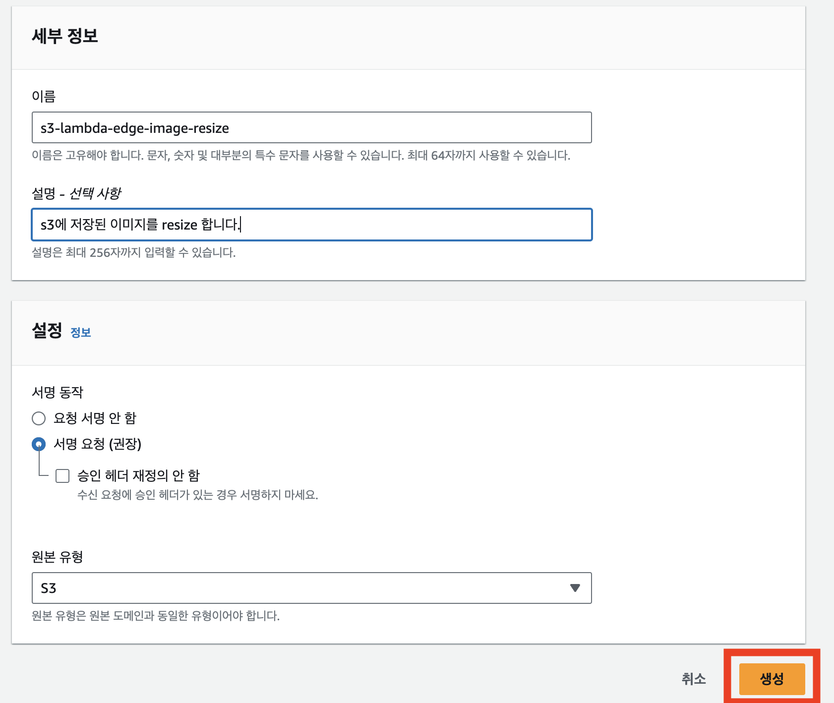 이렇게 CloudFront 를 활용하면 S3에 가진 원본 이미지 하나로도 각 요청에 맞는 사이즈 이미지를 전달 가능하다