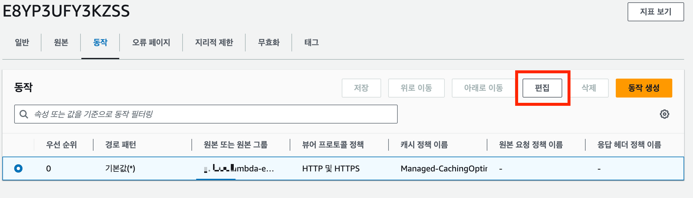 그전에, cloudfront 배포에서 원본을 선택한 다음, 내 원본을 클릭 후 편집을 누른다.