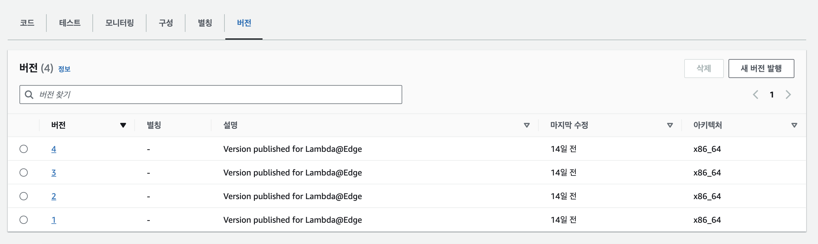 배포를 하면 이렇게 버전이 생긴다. 나는 4번의 수정, 배포를 거쳐서 네 개의 버젼이 있다.