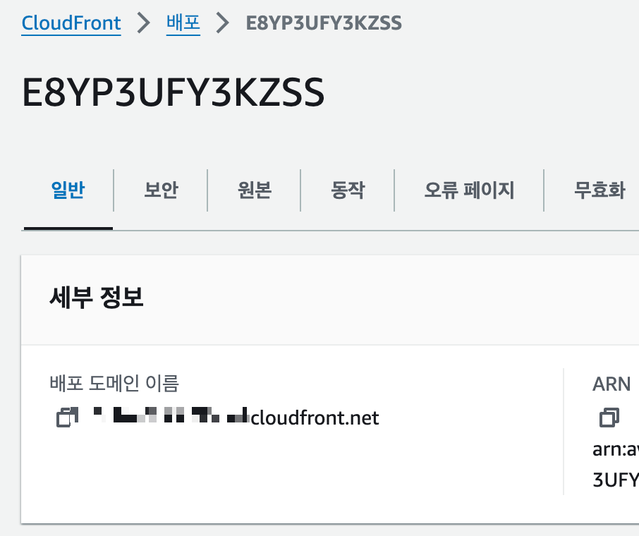 - distribution : 기존에 Cloudfront 에 배포한 것을 선택